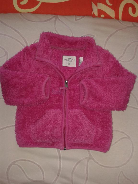 Chlpatá mikina na zips, vhodná aj ako bundička. Bežné známky nosenia, nie je poškodená. Rukávy dlhšie, možno aj ako veľkosť 98.