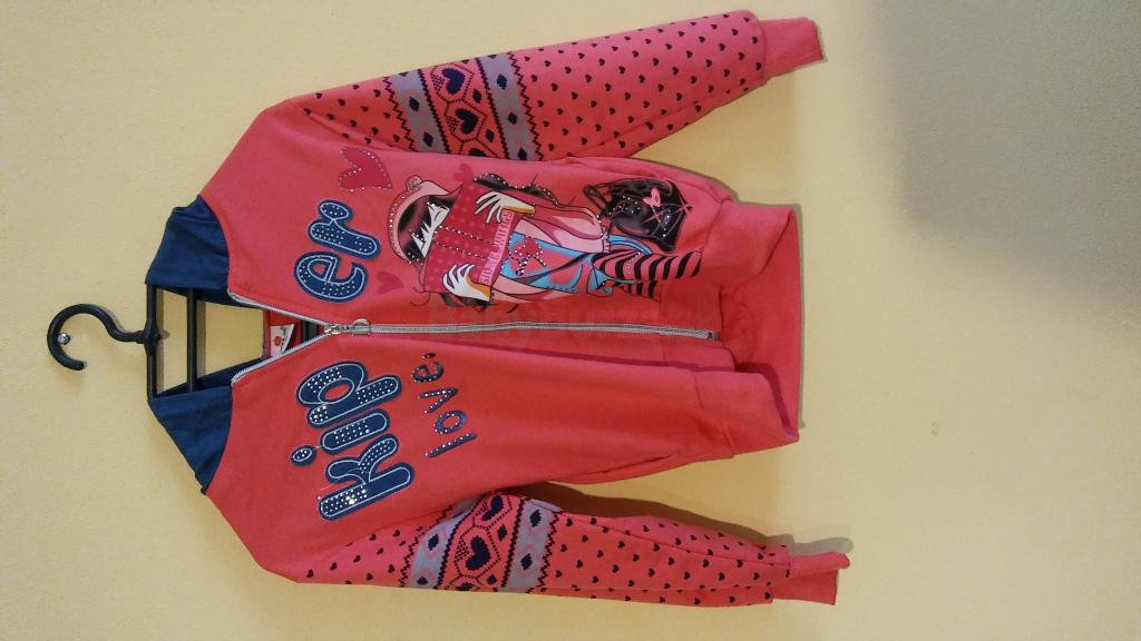 Predám dievčenskú mikinu málo používanú v dobrom stave. Rukáv dĺžka 46 cm a dĺžka mikiny 49 cm. Cena 5 eura