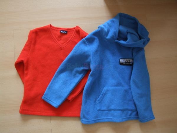 Predám flaušové mikiny. Oranžová s výstrihom do V a tyrkysová s kapucňou a s vreckami vpredu. Používané, ale v dobrom stave.Cena za obidve, ale predám aj jednotlivo.