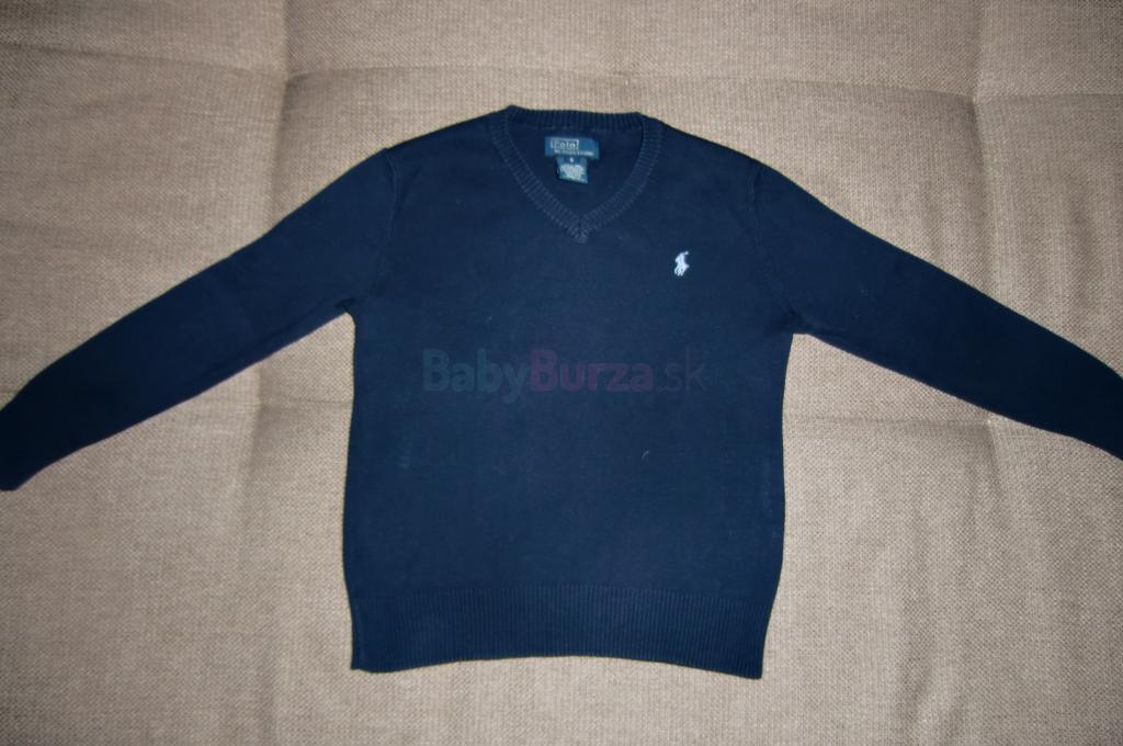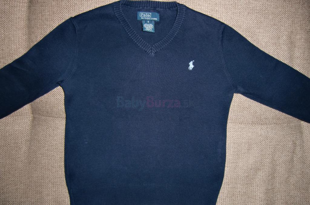 nádherný sveter RL, tmavomodrej farby, velkosť na 6rokov, naša 122/128, pár krát oblečený, nádherný vzhlad bez chýb, žiadne žmolky, príjemný mäkký bavlnený úplet, celková dlžka je 48cm, šírka v podpazuší je 38cm, rukáv je 42cm + 11cm plece